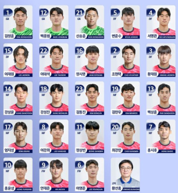 강상윤 강성진 김민우 백상훈 엄지성 정상빈 이강희 홍윤상 홍시후 김동진 최강민 |